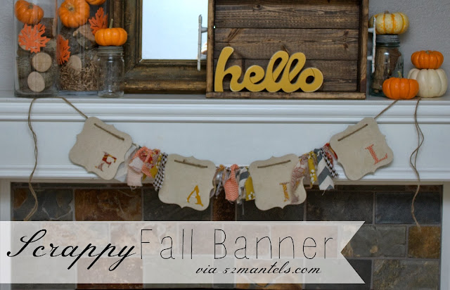 I’m Emily from 52 Mantels and I’m so happy to be here today, sharing the tutorial for my scrappy Fall banner! And, if you want the rest of the details from my Fall Mantel, you can check out today’s post on my site.
