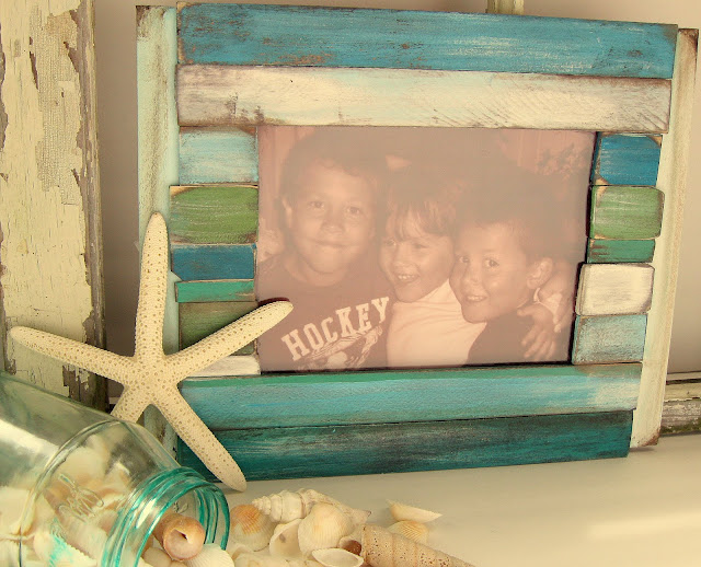 6. Beachy Picture Frame from Paint Sticks via Craftberry Bush